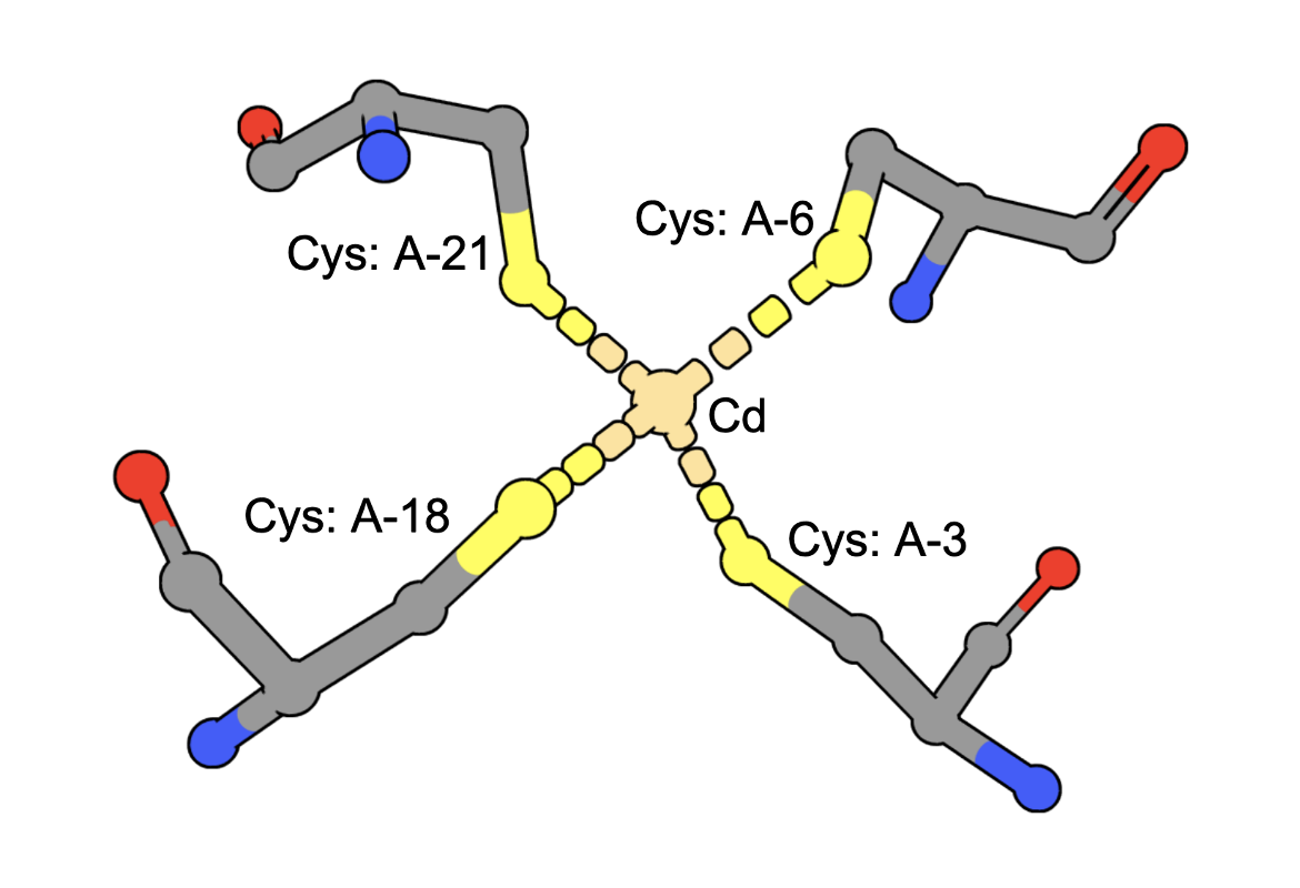 Note: It is possible that structures have the Cd but it is not coordinated by the 4 Cys residues. Thus the results of this query should be examined carefully to ensure that they include at least one cadmium coordinated by Cys4.